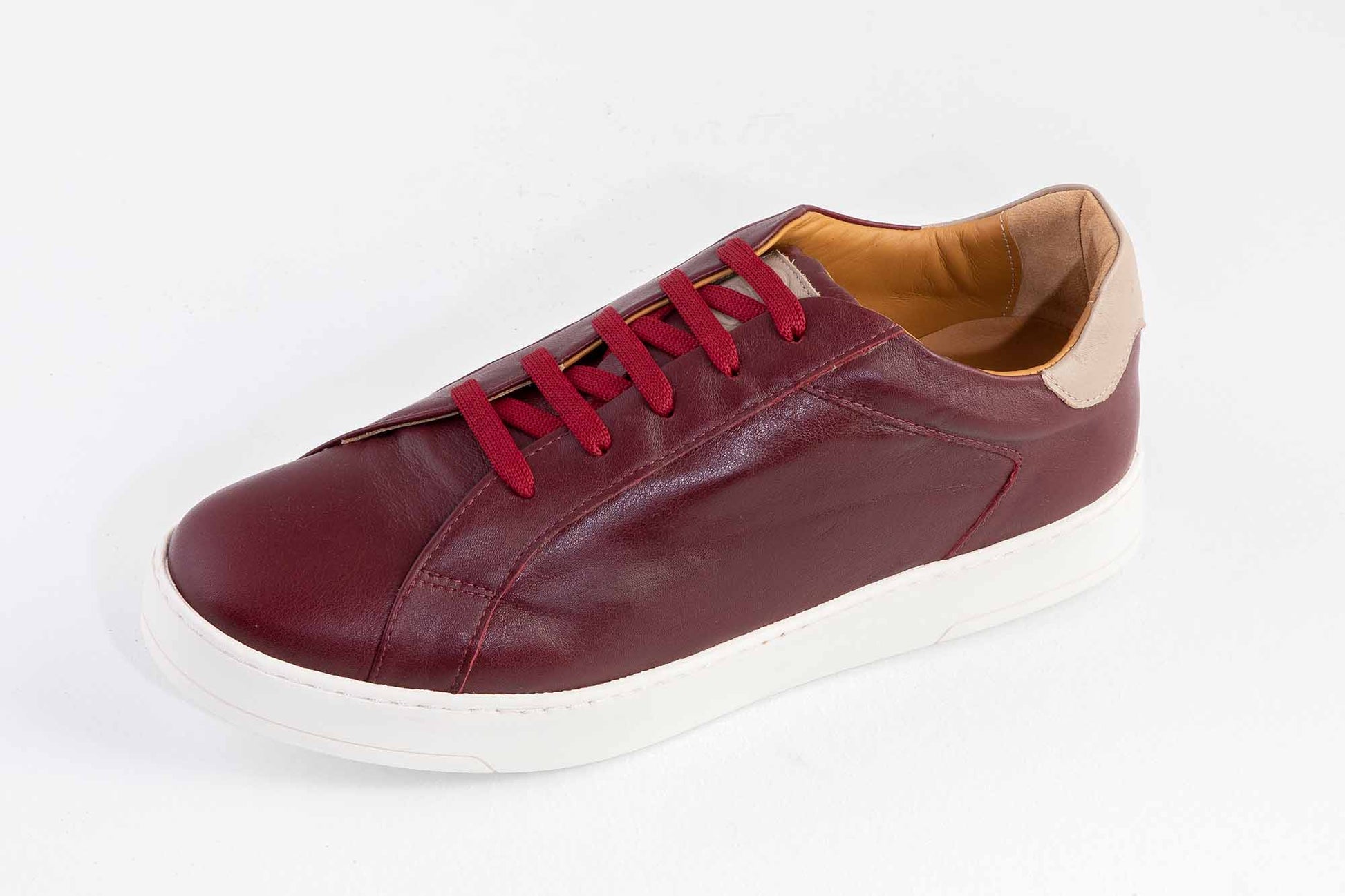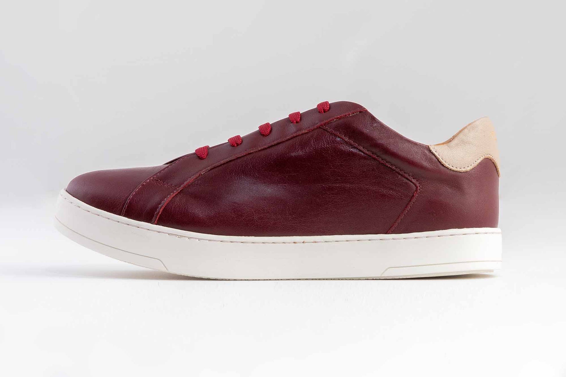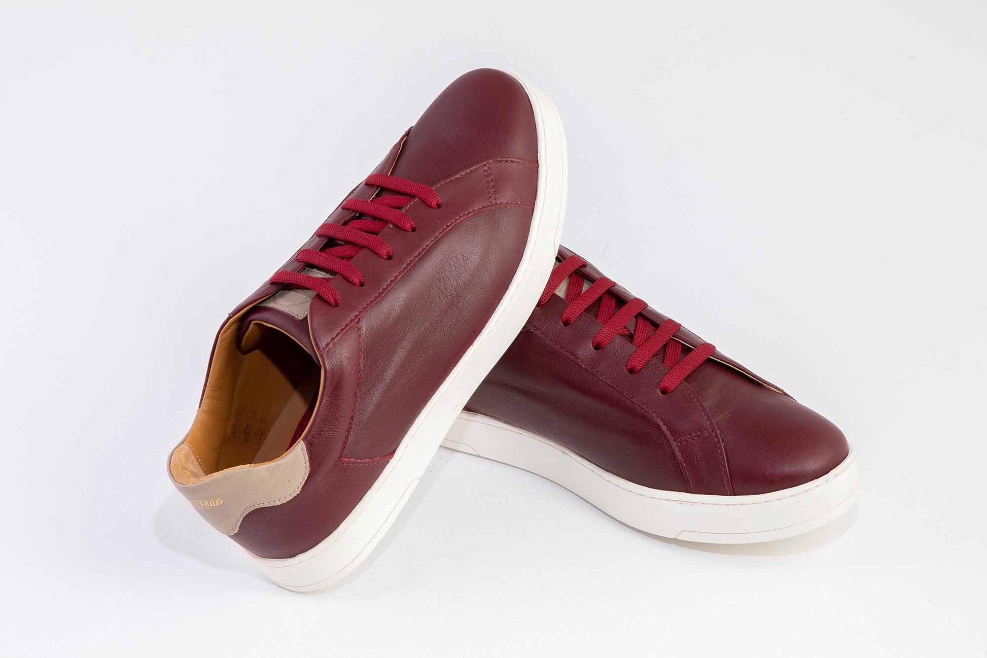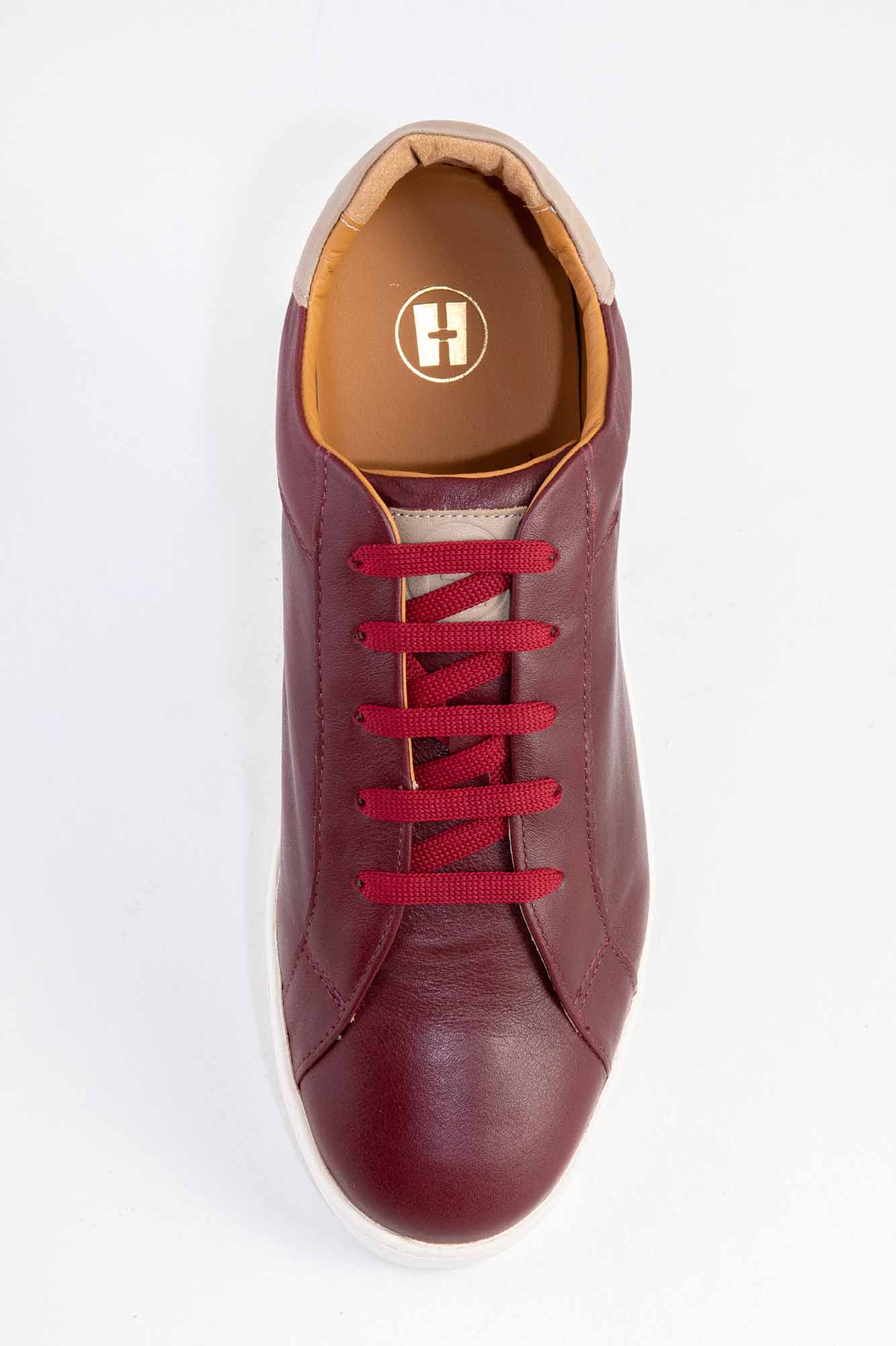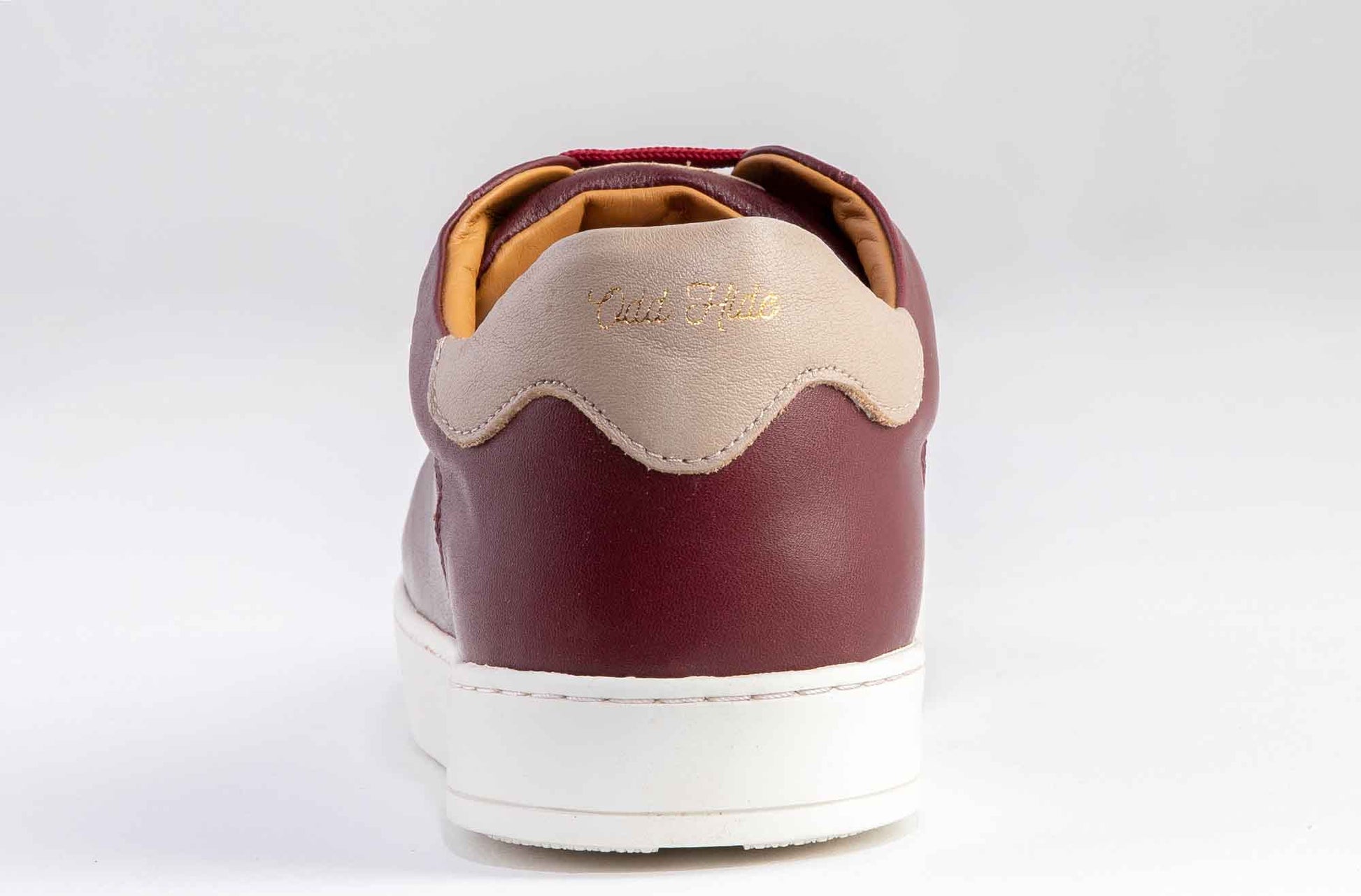 Están hechas de piel vacuno acabado en burdeos y definidas por el detalle en taupe del talón con nuestra marca estampada en oro. La lengüeta característica grabada a fuego con el logo de Odd Hide.