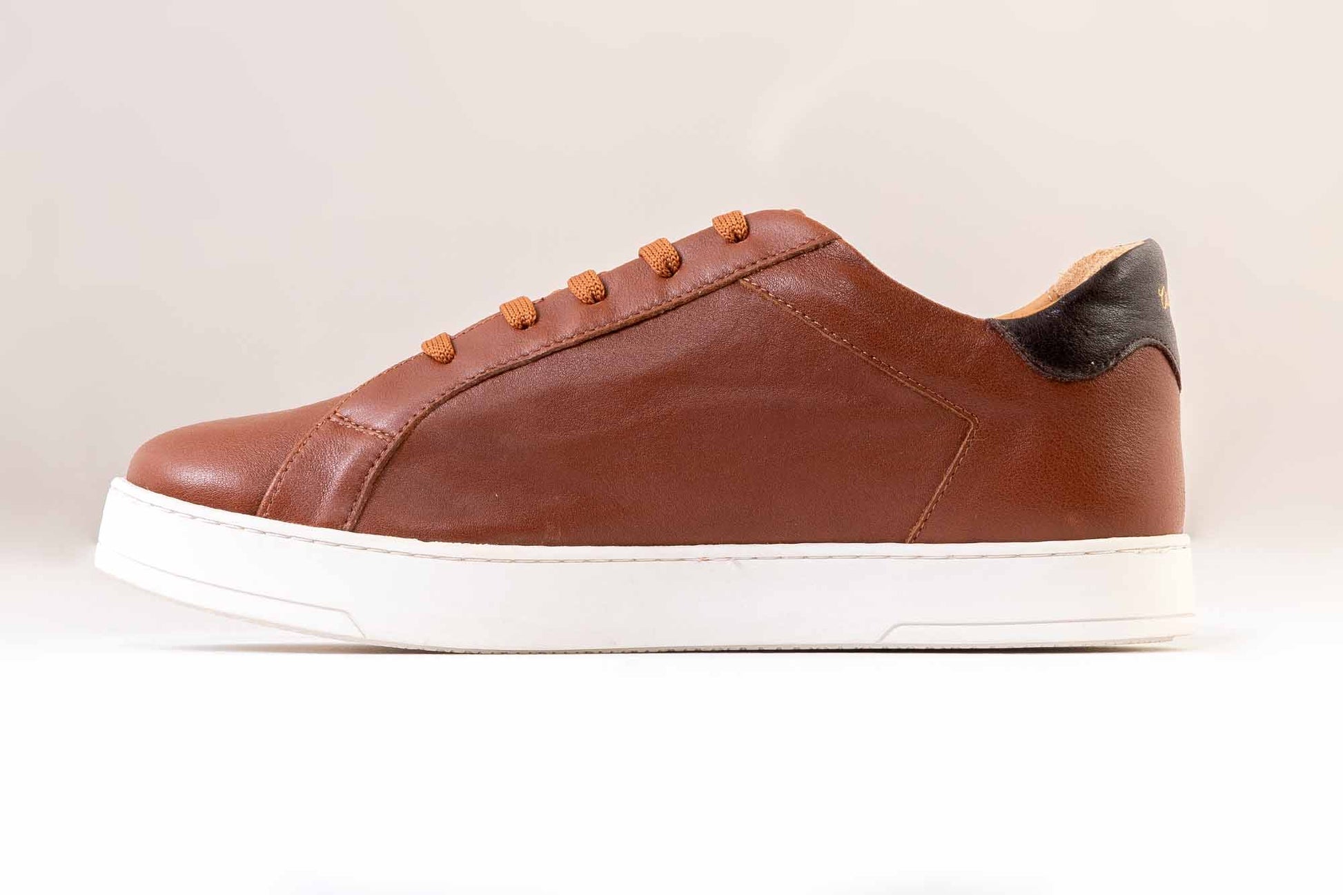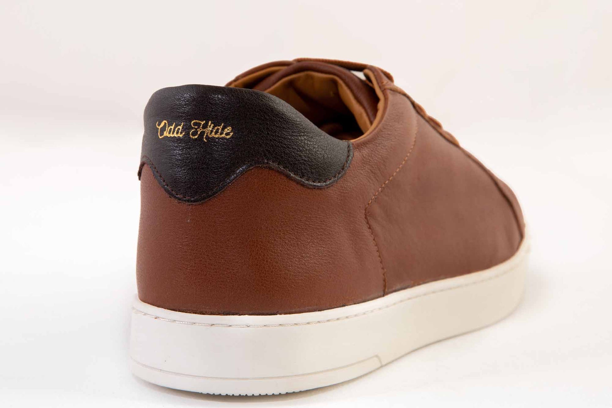 Están hechas de piel vacuno acabado en color cuero y definidas por el detalle en marrón oscuro del talón con nuestra marca estampada en oro. La lengüeta característica grabada a fuego con el logo de Odd Hide.