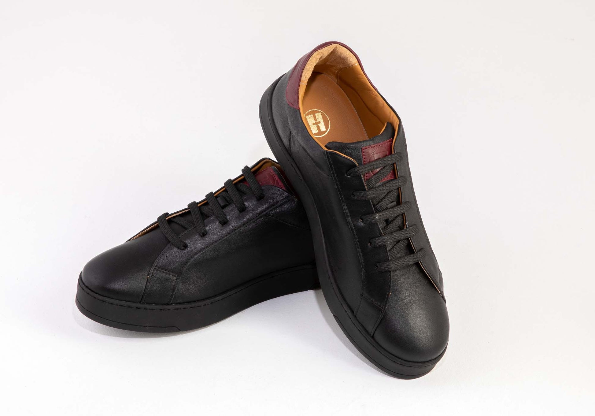 Están hechas de piel vacuno acabado en color negro y definidas por el detalle en burdeos del talón con nuestra marca estampada en oro. La lengüeta característica grabada a fuego con el logo de Odd Hide.